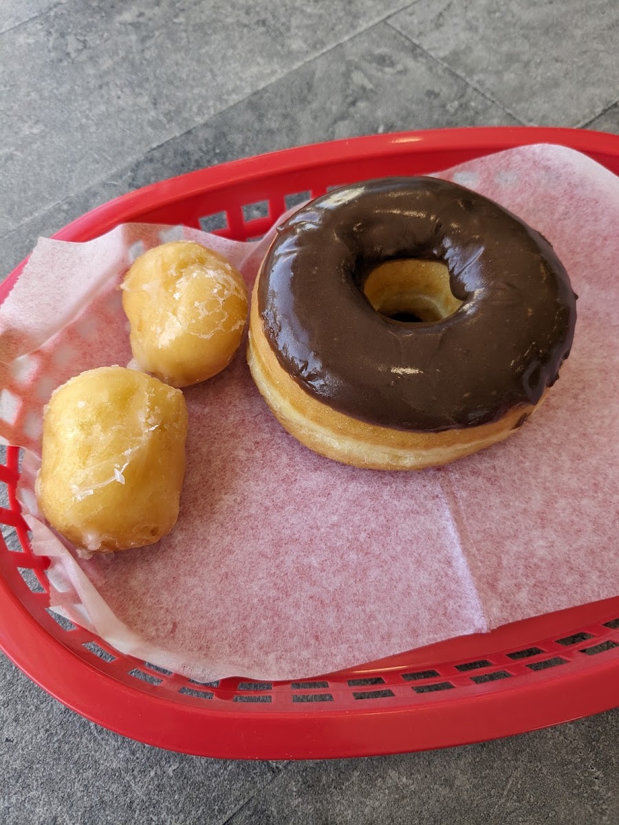 We tried a glazed, chocolate and cinnamon donut and found them to be fresh, light, and fluffy. Paid a reasonable $4. The service was efficient and friendly. Didn't try the beverages. Pro tip - don't try to eat the glazed donuts in the vehicle - it flakes and falls everywhere. Do take care in the parking lot - the curbs are aggressive and there isn't much room for maneuvering.