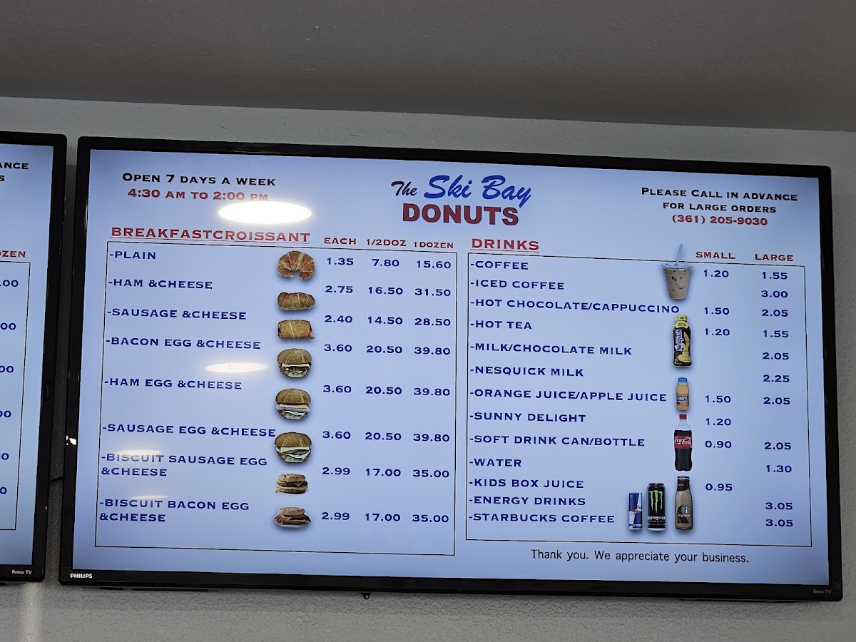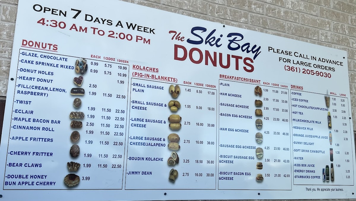 The Ski Bay Donuts Menu